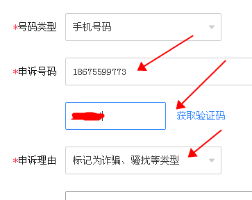 把手机上的验证码填写上输入框后,选择申诉理由,就选被标记为骚扰电话这个就行了。