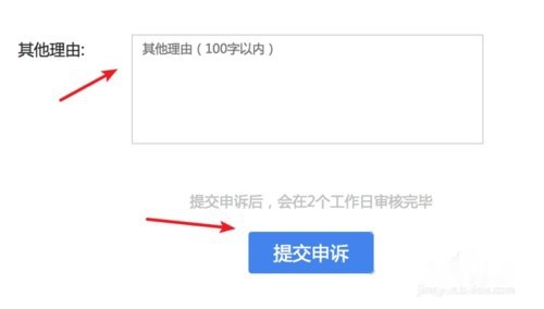 其它理由可不填写,直接点击‘提交申诉’按钮来提交就行了。需要二个工作日来处理,我们等待官方处理就行了,审核通过就会帮你删除这个标记的。