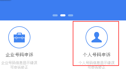 打开后,可以看到有一个‘个人号码申诉’的链接,点击打开。
