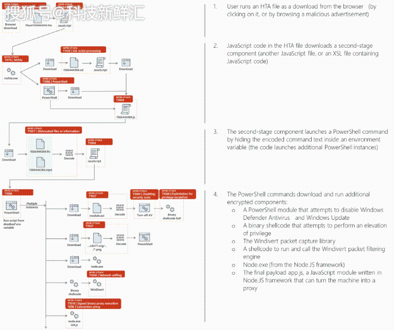 该恶意软件最初在夏季被发现,并通过恶意广告进行分发,该恶意软件强制将HTA(HTML应用程序)文件下载到用户计算机上,该恶意软件分别名为Nodersok(在Microsoft报告中)和Divergent(在Cisco Talos报告中)。