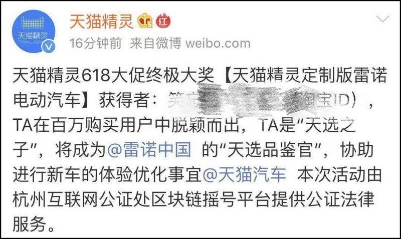每年的6月18日是各大电商平台年中大促的日子,小张也加入购物大军,在天猫上购买了其智能音箱——天猫精灵。尽管在下单时小张就看到商家将在购买用户中抽奖,但当时他并不以为意。