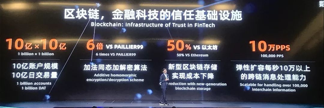 但蚂蚁金服对待技术投入的态度,显然很积极甚至「很烧钱」,蒋国飞表示,蚂蚁的区块链团队引进了大批科学家和有能力的工程师,目前在技术上已经足以领跑世界。从公布的数据来看,目前蚂蚁区块链有 10 亿的账户规模和 10 亿日交易量,新型区块链的存储成本相比以太坊降低了 50%,弹性扩容每秒 10 万以上的跨链消息处理能力。