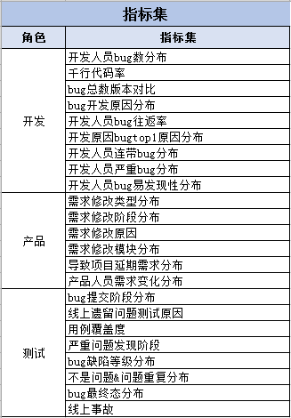 项目分析的维度不同,后期确定的指标也会不同。一般以项目总结的目的为基准方向,确定分析维度。分析维度可以从产品立项到发布每个阶段作为分析维度,也可以按照项目中的角色为维度进行分析。以输入法的项目总结为例,按照产品、开发、测试的测试角色为横向维度进行分析,然后纵向深入分析每个维度的数据。