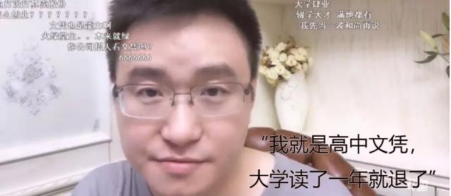 大学上了一年,陈少杰就辍学了。他曾在直播里说自己是高中文凭,不想上大学,理由是“学校不是很出名,水平也不高,觉得4年读下来也没有什么很好的前程”。