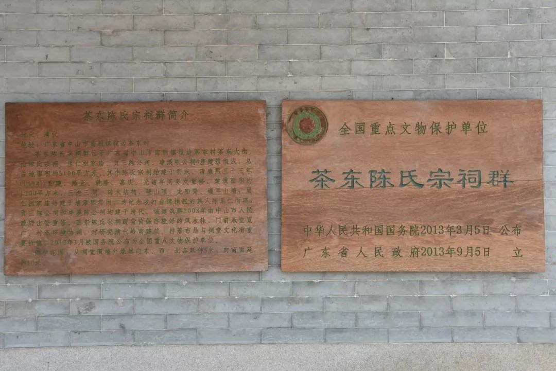 中山市只有三处全国重点文物保护单位,“茶东陈氏宗祠群”是其中之一,另两处是“孙中山故居”和“中山纪念中学旧址”。