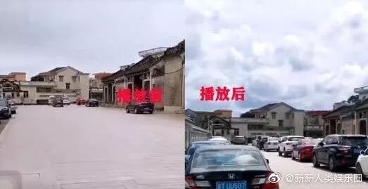 电视剧播放前,空阔的路面与播放后大批停车的对比