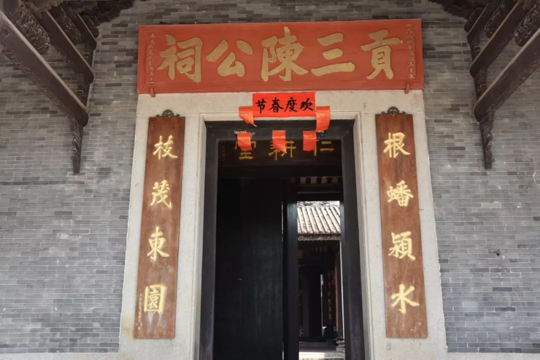 在榄边村有全国重点文物保护单位“茶东陈氏宗祠群”、有明代的古村闸门,清代的古桥、古庙、祠堂、将军造像,民国的碉楼、重建的古牌坊……满满的岭南古村印迹。而我们今日关注的重点是这个陈氏宗祠...