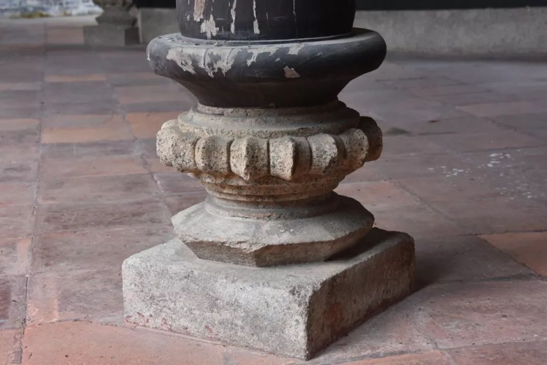 麻石柱础层层叠叠,红砂岩地板砖彰显古韵。