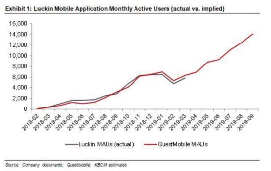 基于QuestMobile的数据和比例,瑞幸19年第三季度可能约有900万至1000万活跃用户,远超此前KeyBanc预估的19年第三季度750万,甚至直接超过了对19年第四季度860万的估计。此外,微信小程序的月活跃用户在9月份也比8月份增加了约21%(据QuestMobile数据,小程序用户约占总活跃用户的18%)。