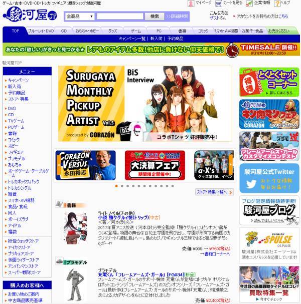 骏河屋作为一家集新品与中古为一体的ACG综合性网站,有很多物美价廉的老物,也是动漫爱好者必备网站。与amiami对比起来,骏河屋中古物的价格低到惊人,优惠活动力度也更大一些,虽然大多是老物件但品相还算不错,偶尔也售卖偶像系周边和零食。