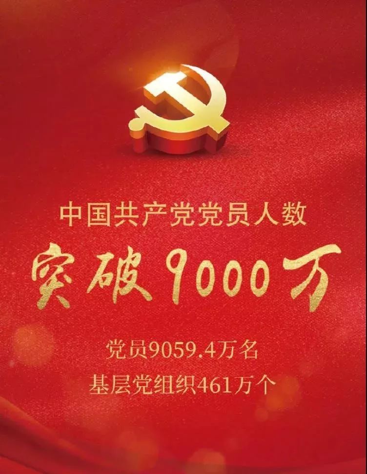 截至2018年12月31日,中国共产党党员总数为9059.4万名,比上年净增103.0万名。