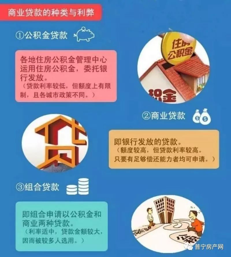 贷款购房主要分为住房公积金贷款、个人住房商业贷款和个人住房组合贷款三种。
