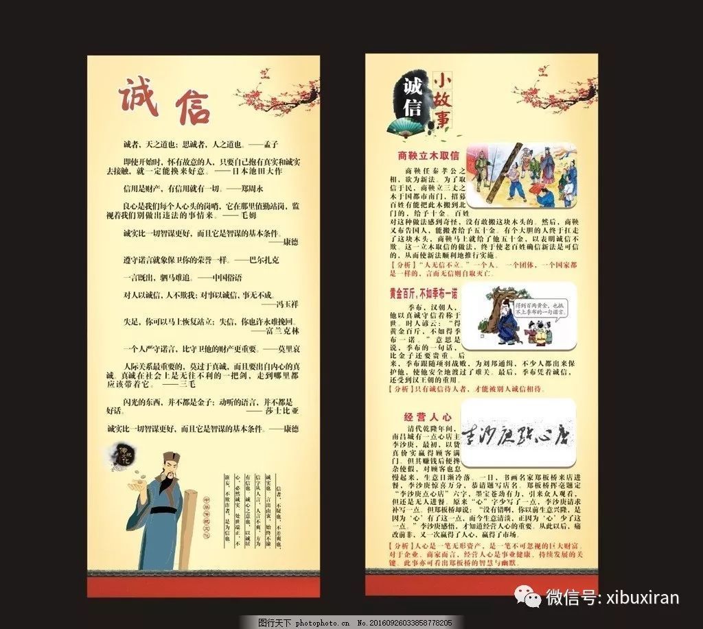 商鞅任秦孝公之相,欲为新法。为了取信于民,商鞅立三丈之木于国都市南门,招募百姓有能把此木搬到北门的,给予十金。百姓对这种做法感到奇怪,没有敢搬这块木头的。然后,商鞅又布告国人,能搬者给予五十金。有个大胆的人终于扛走了这块木头,商鞅马上就给了他五十金,以表明诚信不欺。这一立木取信的做法,终于使老百姓确信新法是可信的,从而使新法顺利地推行实施。