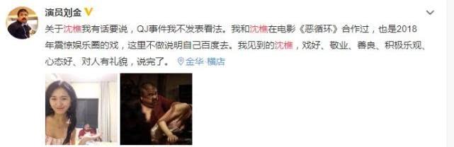 只不过虽然在网上挺沈樵的人可谓是屈指可数,但是还是有一位叫刘金的演员在网上发文称,沈樵的戏好敬业,善良乐观,绝不像网上说的那么低俗