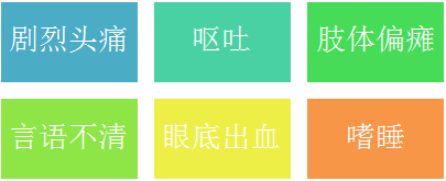 剧烈头痛:头痛是脑出血的首发症状,常常位于出血一侧的头部。有颅内压力增高时,疼痛可以发展到整个头部。头晕常与头痛伴发,特别是在小脑和脑干出血时。
