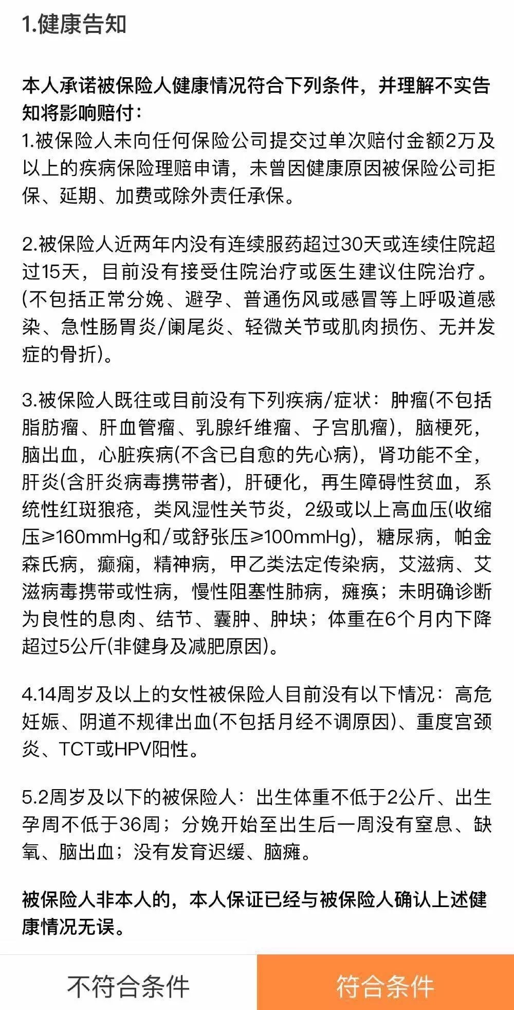但实际上呢,作为信美相互已经像监管备案的一款产品,“相互保”也是严格遵循健康告知规定的,不信你看