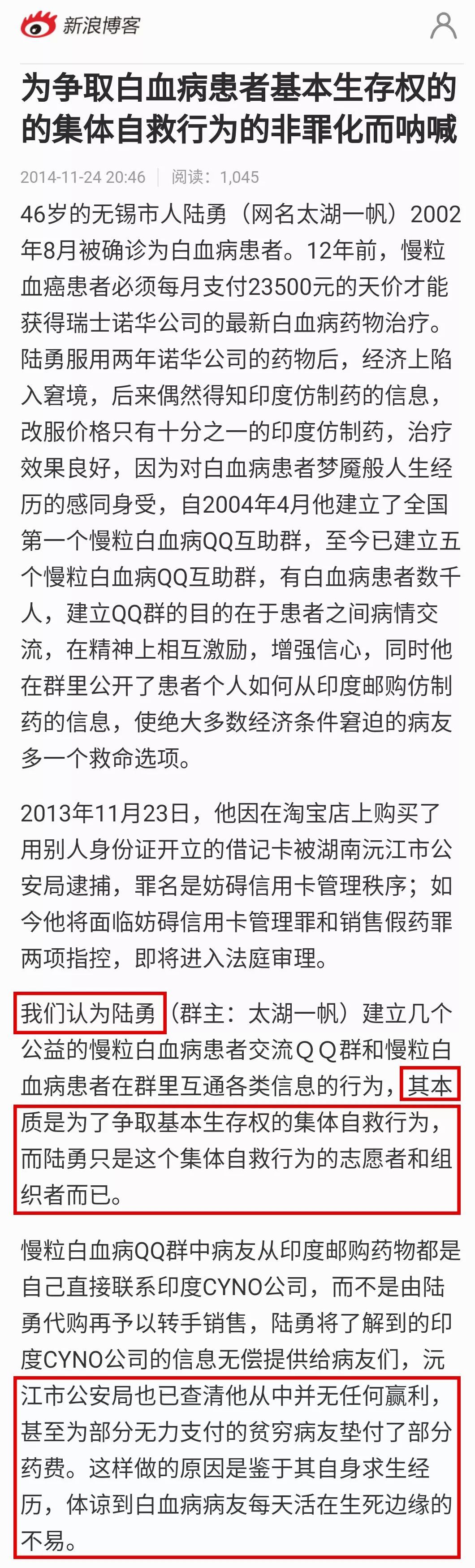 毕竟陆勇自己是白血病患者,也没利用代购药品获利。