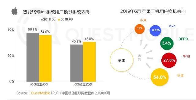 根据QuestMobile的数据,在安卓手机和华为手机的换机取向中,小米均位列最后。