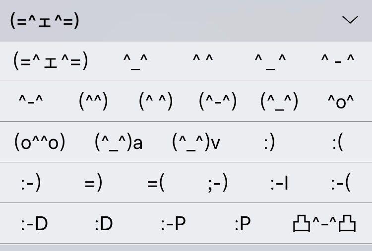 一些朋友表示自己下其他输入法的原因是因为那些输入法有很多可爱的颜文字可以用,其实苹果自带的输入法也是有颜文字的,点左下角“123”-“#+=”-“^ _^”就能选择颜文字表情了。