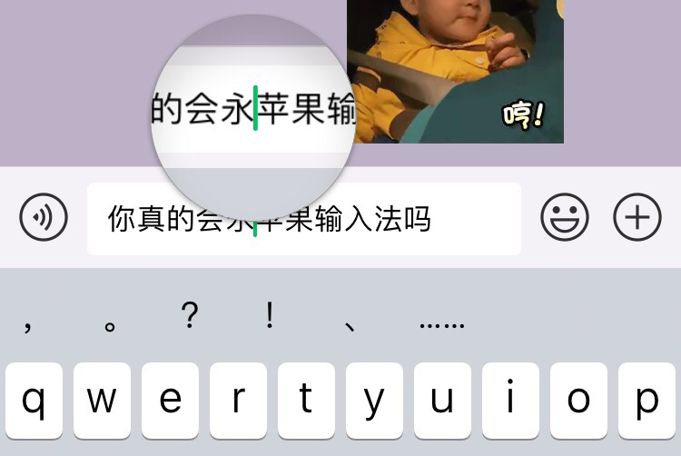 有时候我们输入到一半发现之前的某个字输入错了,有些朋友就会一直不停按删除键,一直删除到那个错字为止,或者干脆整段删掉重新打,其实我们可以长按输入框直到出现一个放大镜,然后可以将光标移动到错字后边进行修改。