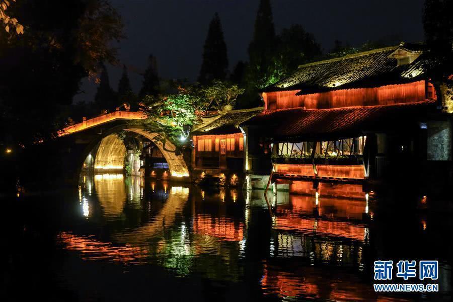 这是10月19日拍摄的乌镇夜景。 第六届世界互联网大会将于10月20日至22日在浙江乌镇举行。本届大会以“智能互联 开放合作——携手共建网络空间命运共同体”为主题,在全球范围内邀请1500余位嘉宾围绕创新发展、网络安全、文化交流等议题进行探讨交流。 新华社记者 徐昱 摄