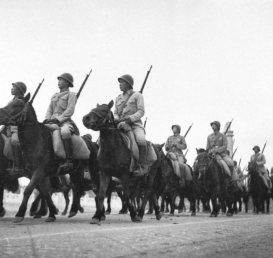 参加分列式的中国人民解放军骑兵部队通过天安门