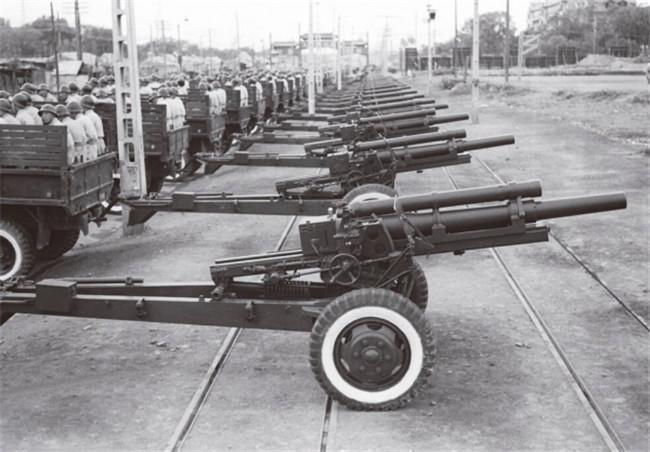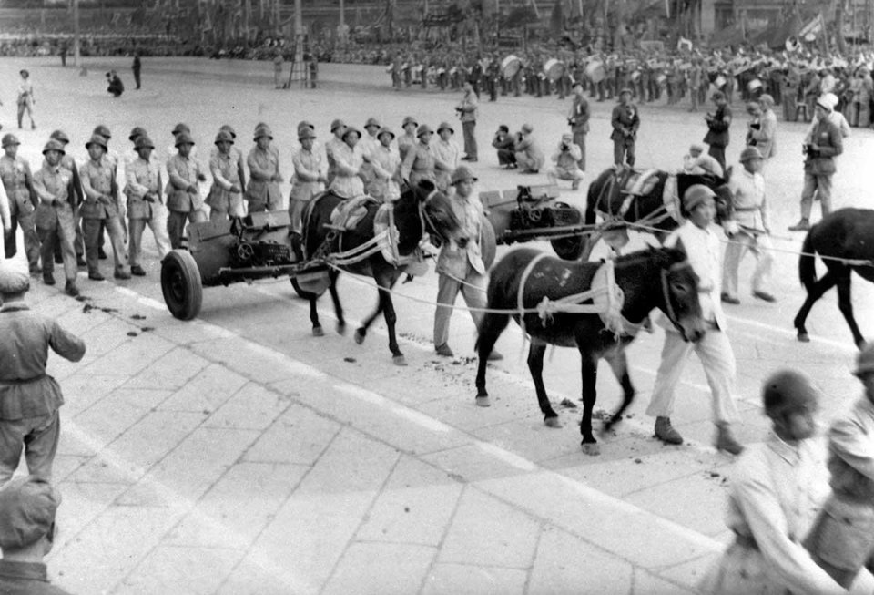 受检阅的中国人民解放军山炮部队由骡马拖拽,参加分列式。
