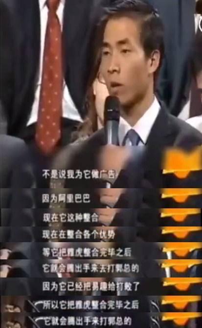 截下来小伙说出了自己的预测:“我想预测一下,在座的有一个慧聪网,其实我本人,我感觉我对慧聪网,我也经常使用慧聪网的搜索,但是我不看好慧聪网的未来,因为我认为未来在那个行业,只有阿里巴巴才能做到最好。”