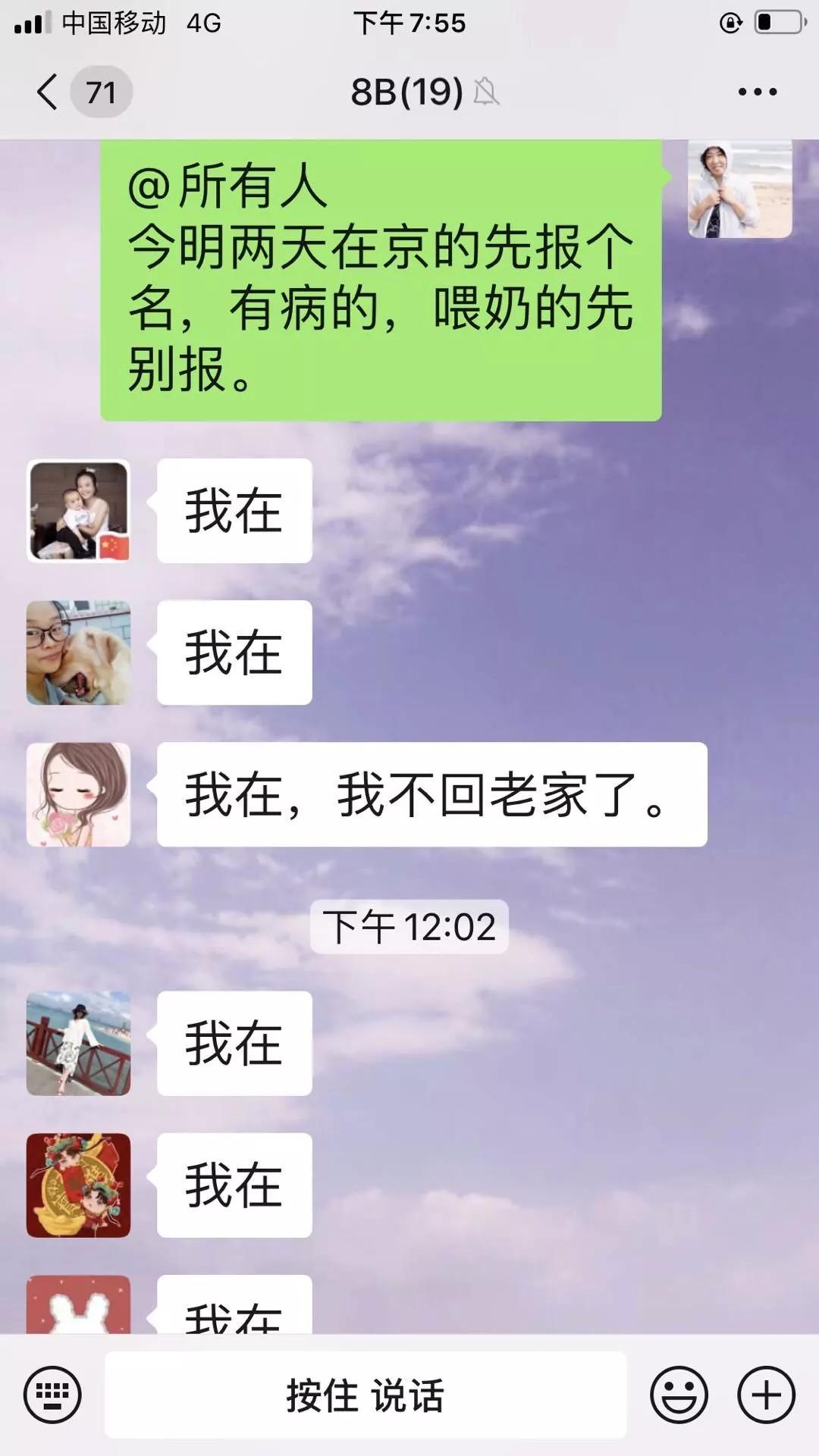 我回到病房看着班表离京的情况,还有发烧在家的3人,能够值班的人没剩多少了,我随口问了正在病房值班的3名护士:“你们这4天有事吗?没事咱们4人先一人值一天吧?”没想到,大家都很配合,5分钟就搞定值班。