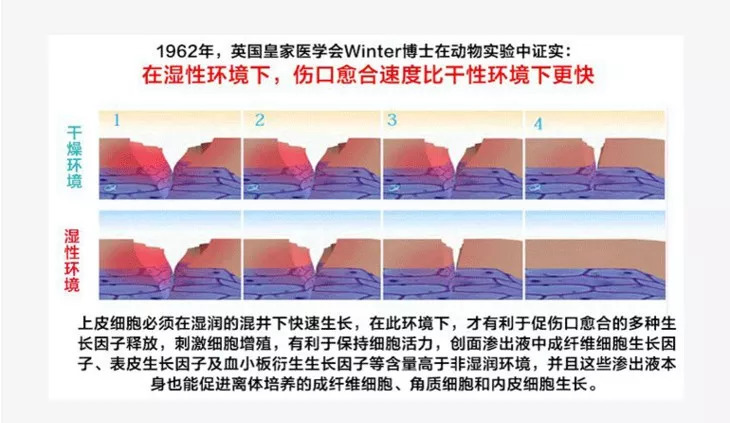 使用液体创可贴的时候还会为伤口创造一个湿性环境,根据英国皇家医学会的动物实验结果,在湿性环境下,伤口的愈合速度比干性环境更快。
