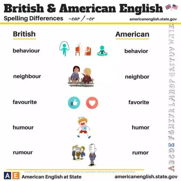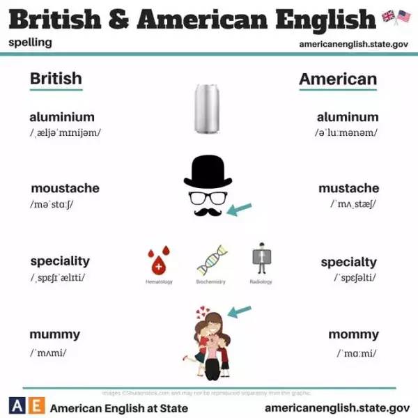不仅有用法上的区别,还有很多拼写区别,以后看到这些词就不会觉得是人家拼错了!
