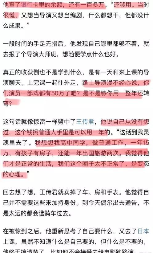 有导演跟他说,你们演员一部戏有50万吧,是不是够你们用一年的?这个对他刺激很大,他没想到,这点钱对于普通人可以用一年。
