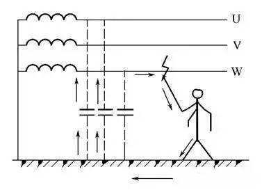 单相触电是指当人站在地面上人体的某一部位触到某相火线而发生的触电现象。在低压供电系统中发生单相触电,人体所承受的电压几乎就是电源的相电压220V。