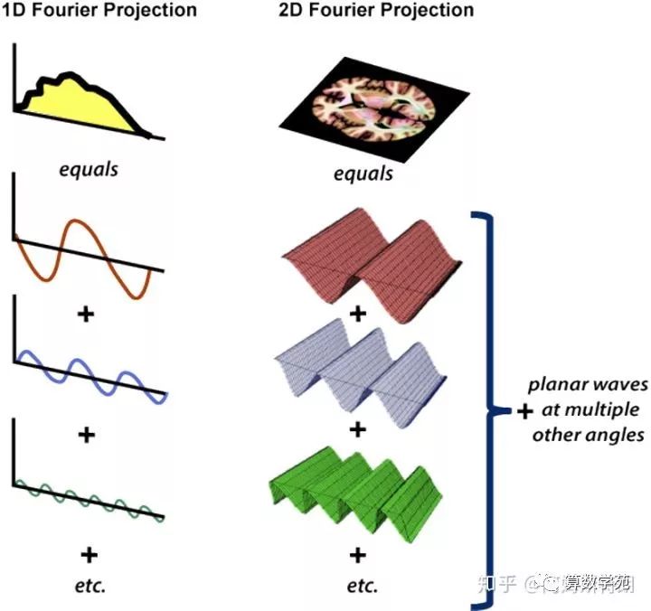 确实是这样,二维FT将一个图像分解成若干个三角平面波之和。如下图: