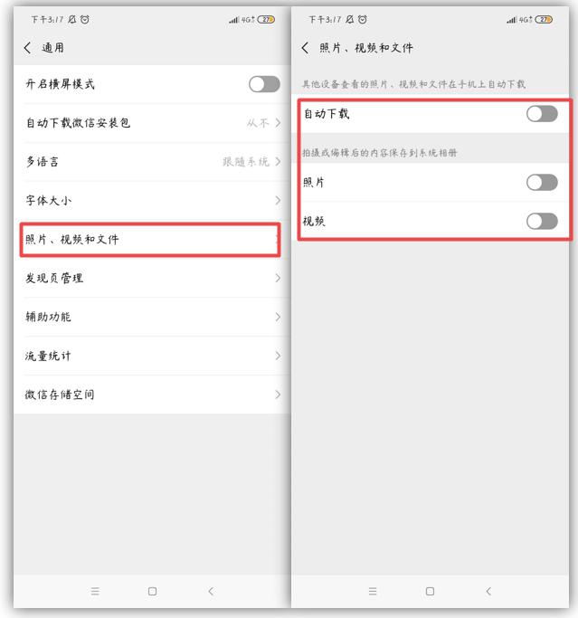 微信作为日常使用的工具,聊天、娱乐、工作……活动量还是很大的,如果你的微信开启了这个功能,内存简直就是要了命,毕竟多大的内存也遭不住,看过的视频、图片、文件都自动的下载,所以建议大家进行关闭哦。