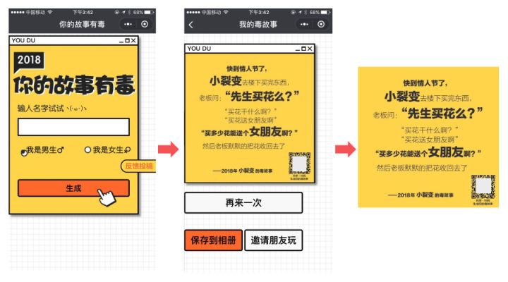 还有测试类小程序裂变、炫耀类小程序裂变,这两种玩法在H5营销中用的比较多,相关玩法大家可以直接看图: