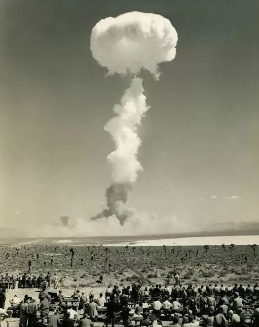 ▲ 1952年4月22日,数以百万计的美国人打开电视机,期待着看他们最喜欢的肥皂剧和游戏节目,结果却看到了电视节目的巨大变化。内华达州沙漠里的蘑菇云,在美国各地的黑白电视屏幕上闪烁,这是美国首次在全国范围内直播核试验。