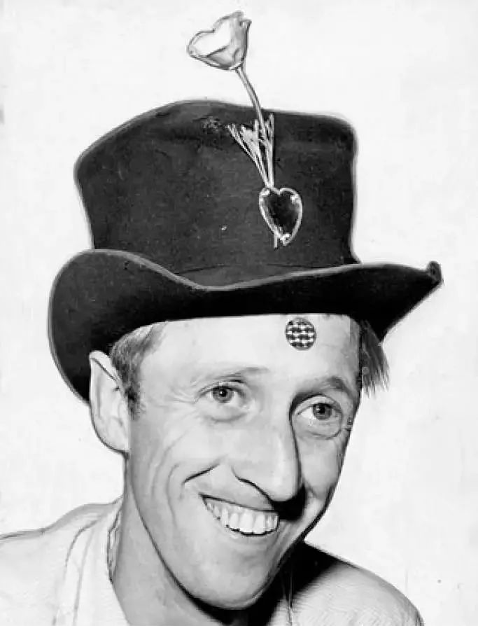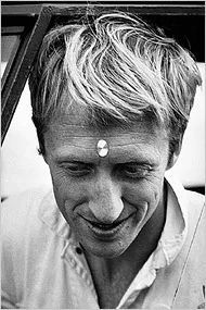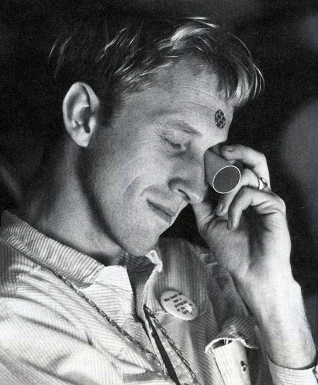 在汤姆·沃尔夫的《电光助酸试验》,穿越 60 年代的迷幻之旅,斯图尔特也在,就在第二页,“一个又瘦又金发的家伙”,“额头上有一块发光的圆盘”,“戴一条用印度珠子做的领带……但没穿衬衫”。