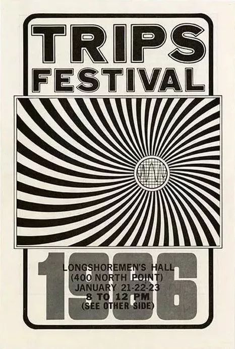 1966 年 1 月 21 - 23 日,斯图尔特和肯·凯西联手将“欢乐捣蛋鬼”的日常派对再往前推进一步,在旧金山码头工人大厅推出了Trip Festival。为期三天的狂欢,融合了音乐、戏剧、灯光、迷幻剂,6000 人挤满大厅纵情狂欢,他们第一次发现原来有这么多嬉皮士存在。