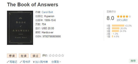 如今《答案之书》早已有了中文的版本,其在豆瓣的评分也高达“8”分。