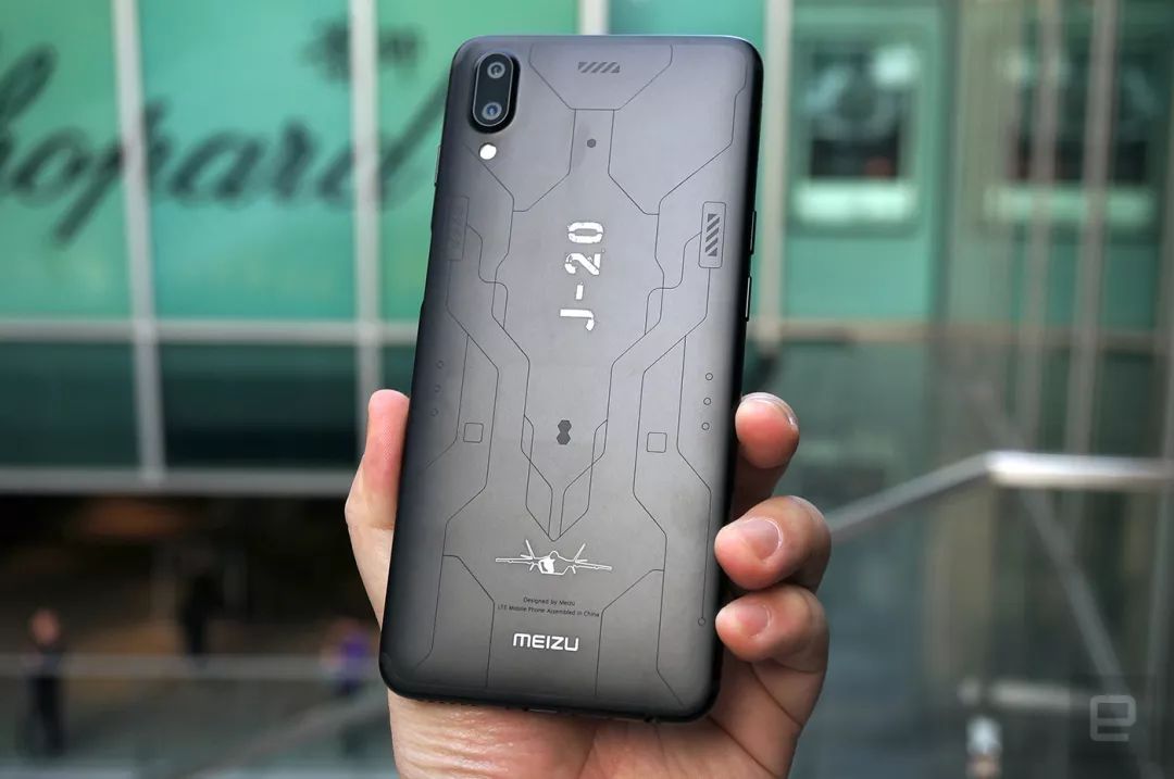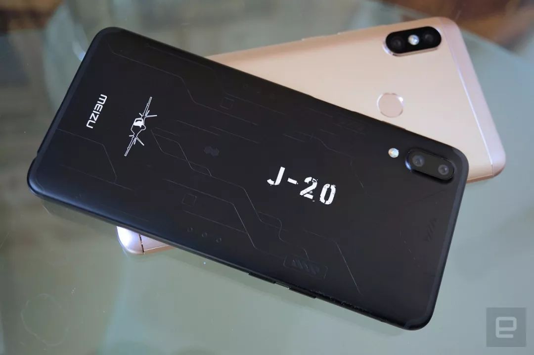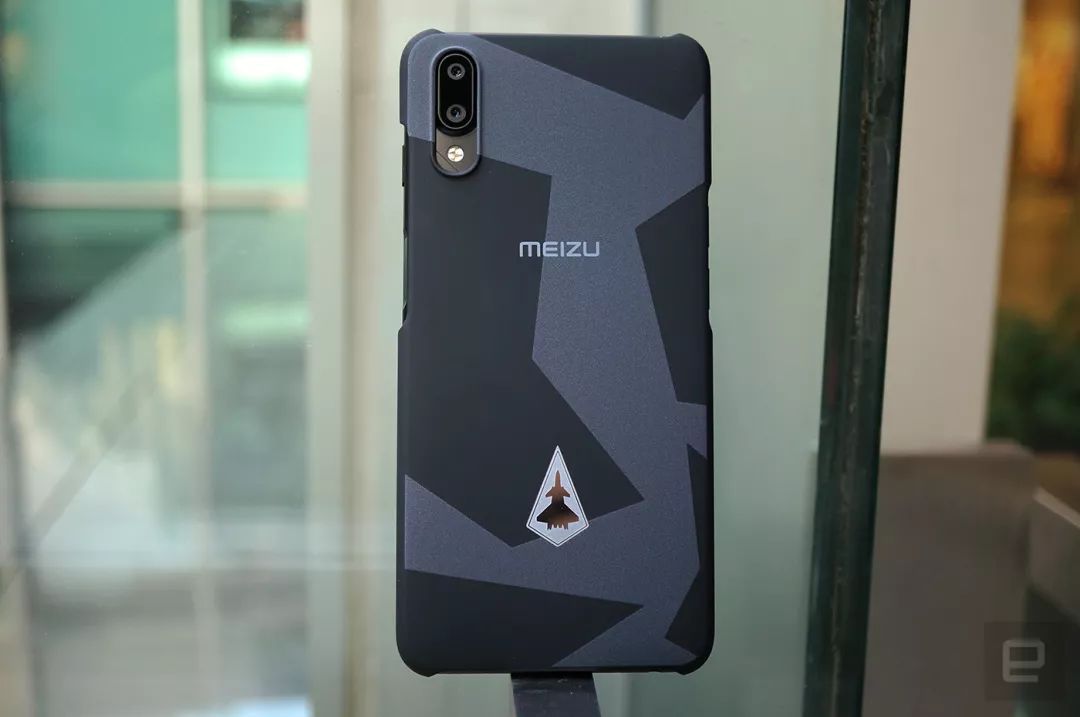而且啊,这一次魅族仍然没有满足于颜色上的变化。继去年的魅蓝 Note 6 推出颇受好评的《海贼王》主题版后,今年他们又联手中航打造了灵感脱胎于歼-20 战斗机的特别版魅蓝 E3,也就是笔者测试的这台了。在外观上这个版本仍是以黑色为底色,但背盖上多了激光刻印的「微米级」纹路,虽然内敛但很有工业美感。系统所用的主题也是很具科技感的蓝色调,视觉元素有棱有角。配套的保护壳上,则是对应背盖以黑灰色为主的几何花纹。从内到外整体的冷峻风格,哪怕对不是军事迷的笔者来说,吸引力也是实打实的(更何况魅族还有带歼-20 模型的典藏版等着爱好者入坑呢!)。
