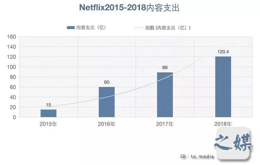 不过,为了维持内容优势,Netflix每年花在内容库上的投资通常都会占到其总收入的70%-80%。且由于其推行加强自制的战略导致内容成本急剧上升。2015年Netflix的内容支出为15亿美元,而到2018年则增至120.4亿美元,4年时间增至8倍。