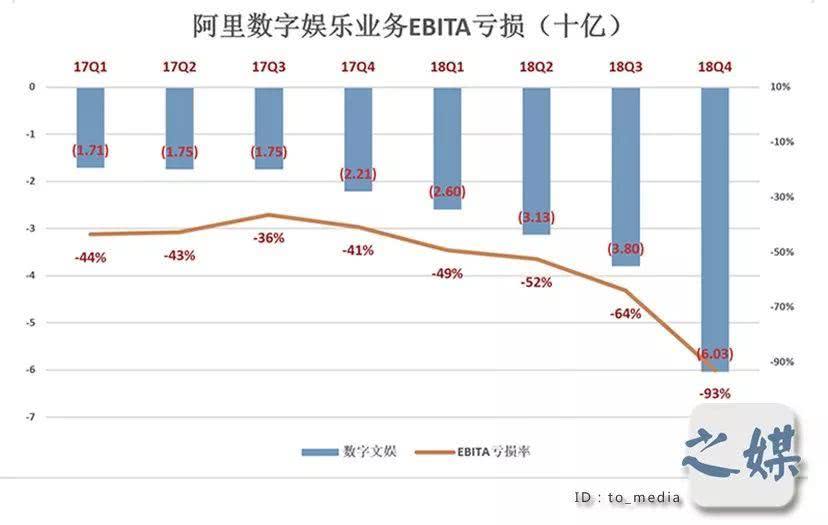 优酷则成为了阿里生态圈中最烧钱的部分。阿里数字娱乐业务主要包括优酷土豆和UC浏览器。2018年整体亏损达到155.6亿。虽然阿里高层承诺会在未来几年的投入达到500亿,并且不指望在十年内实现盈利,但如此大的亏损确实触目惊心。