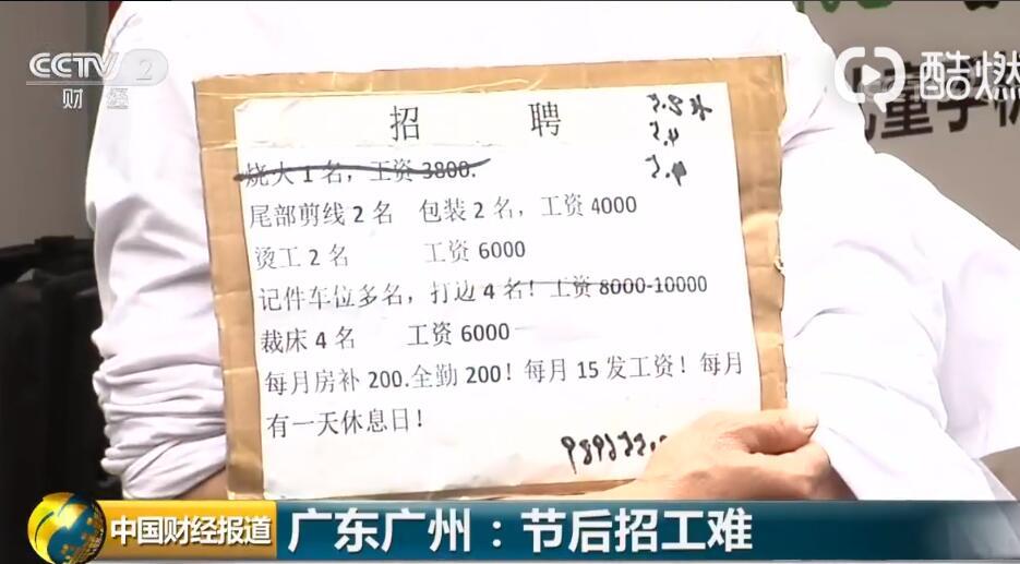 据中新网报道,当年3月,海珠区康乐村,小制衣厂的老板和管理人员拿着简易的招工牌在路边招工,即使月薪提高到6-7千,前来应聘的工人也寥寥无几。