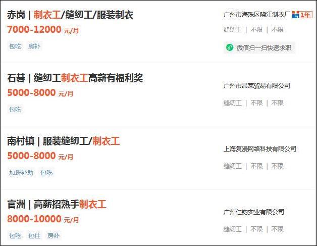 从招聘网站上可以看到,当地的制衣工最高月薪甚至可以达到1.2万元。