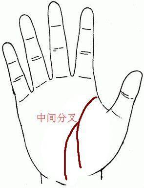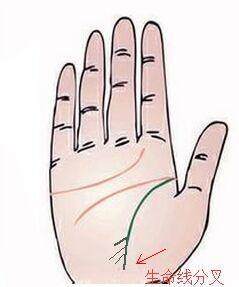 2、又比如很多人以为生命线分叉不是好事,其实恰恰相反生命线若在中段分叉不管向上向下都意味命主可以健康长寿乃至中年发迹,其人后福绵长久远;