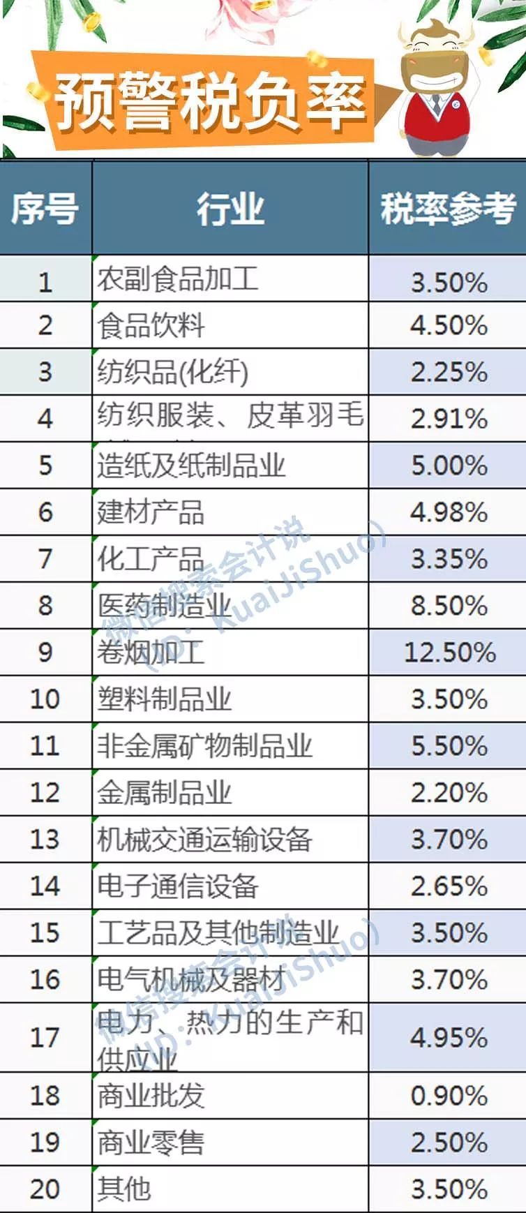 2019 最新各行业“预警税负率”大全!