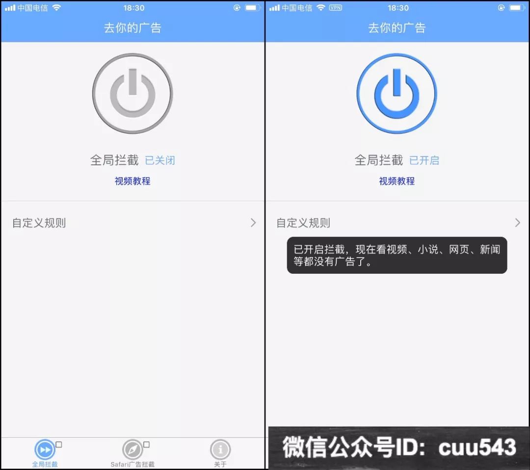 - App Store 搜索下载“去你的广告”。下载后打开App即可,然后放在一边先不管它