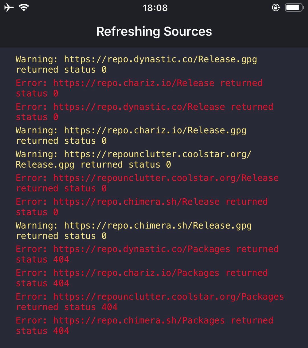 我们打开 Sileo 应用商店,这一步可能会如下图显示错误