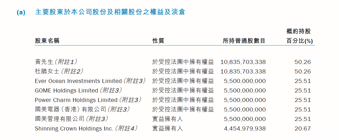 国美金融科技:黄光裕夫妻拥有61.20%股权